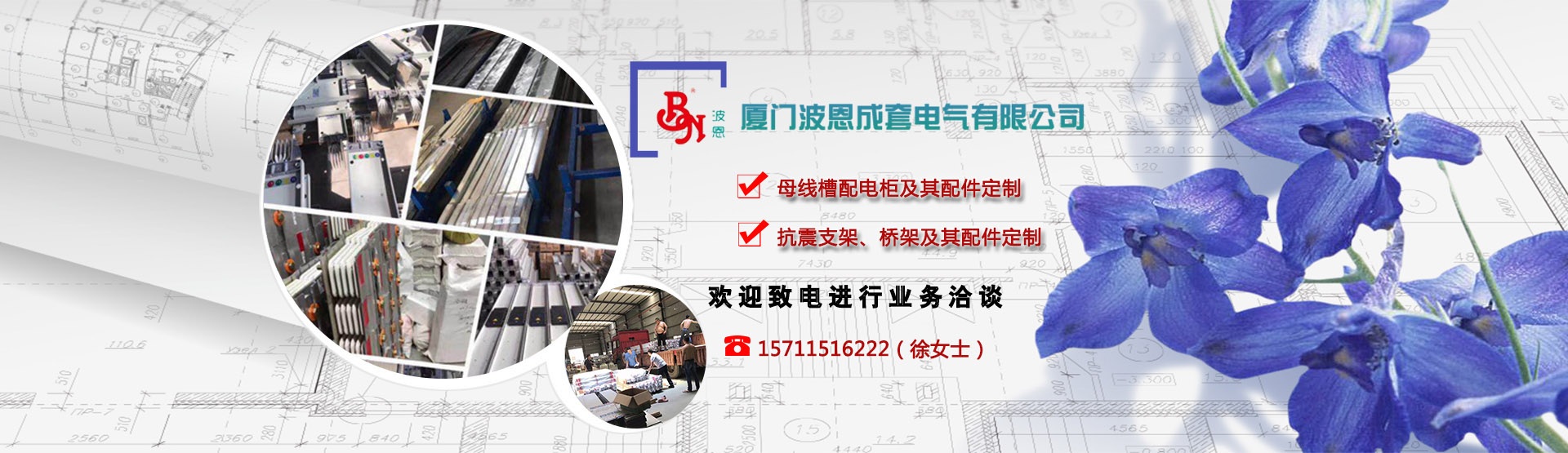 廈門(mén)波恩成套電氣有限公司是國(guó)內(nèi)專(zhuān)業(yè)從事母線槽、電纜橋架、滑觸線、配電柜等系列產(chǎn)品科研、生產(chǎn)和技術(shù)服務(wù)的企業(yè)。公司地處旅游城市——廈門(mén),風(fēng)景優(yōu)美,交通便利。公司專(zhuān)注于母線槽、抗震支吊架以及橋架產(chǎn)品的研發(fā),設(shè)計(jì),生產(chǎn),銷(xiāo)售和服務(wù)的現(xiàn)代化企業(yè)。公司致力于新型配電技術(shù)研發(fā)與新工藝產(chǎn)品制造,為客戶提供突破性的配電一體化解決方案,以優(yōu)異的產(chǎn)品品質(zhì),為數(shù)百家包括有關(guān)部門(mén)/機(jī)關(guān)、醫(yī)院、學(xué)校、酒店、寫(xiě)字樓、商業(yè)中心,工礦企業(yè)等不同領(lǐng)域的客戶提供服務(wù),并得到認(rèn)可和信賴。